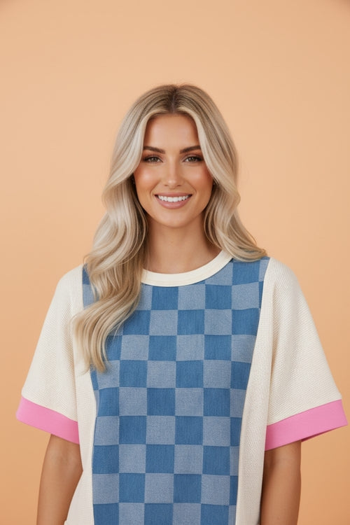 Solid Waffle Knit Round Hem Chest Pocket Tee